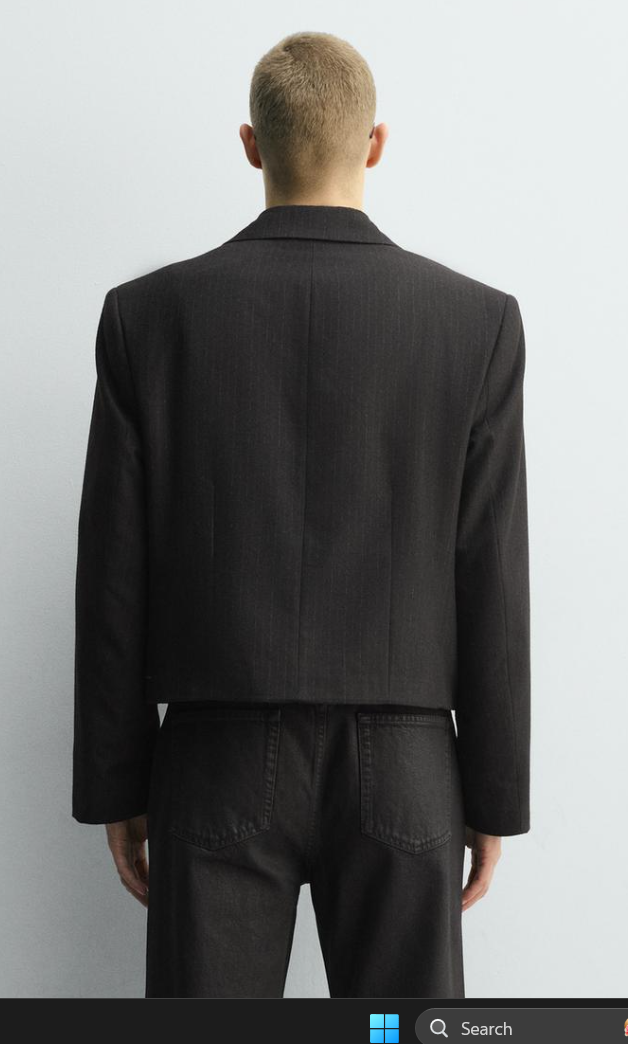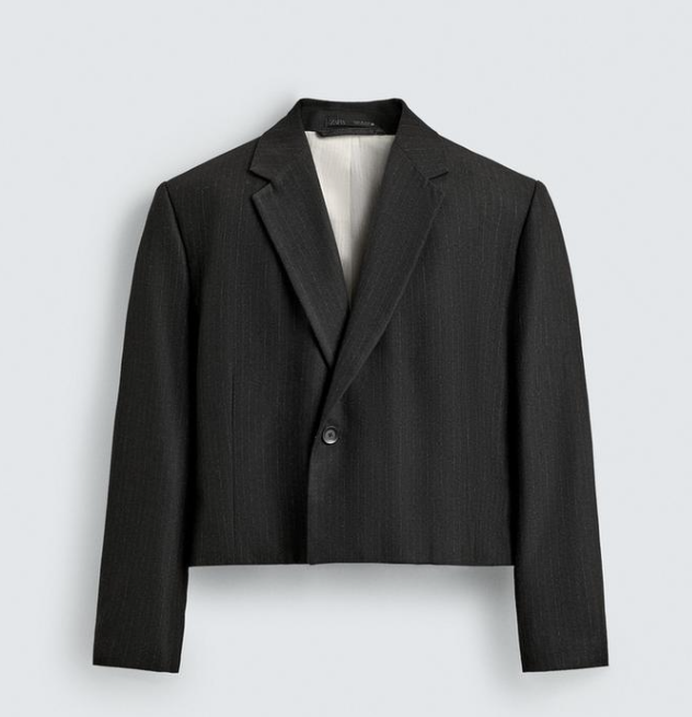 This cropped blazer is tailored with clean lines and a contemporary silhouette, offering a refined take on classic tailoring. Designed with a sharp lapel collar, long sleeves, and a single-button closure, it delivers a structured yet lightweight feel suitable for all-day wear. The subtle texture adds depth while maintaining a polished finish.