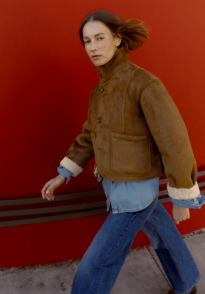 SUEDE-EFFECT JACKET DESIGNED FOR WARMTH AND MODERN STRUCTURE.