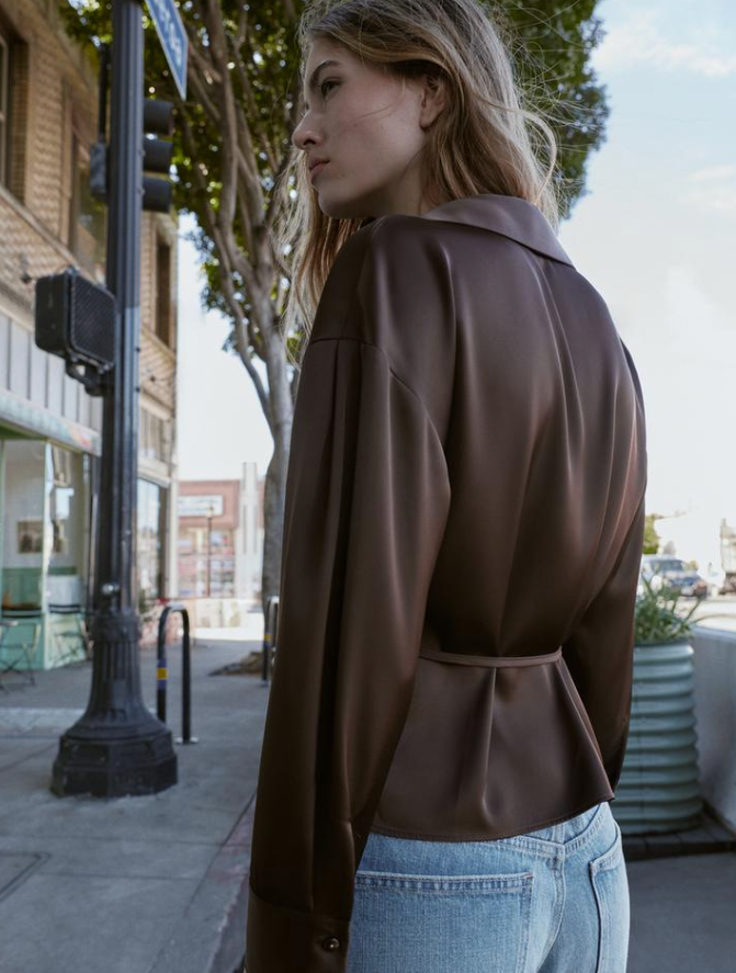 SATIN SHIRT DESIGNED WITH A MODERN, FEMININE SILHOUETTE.
